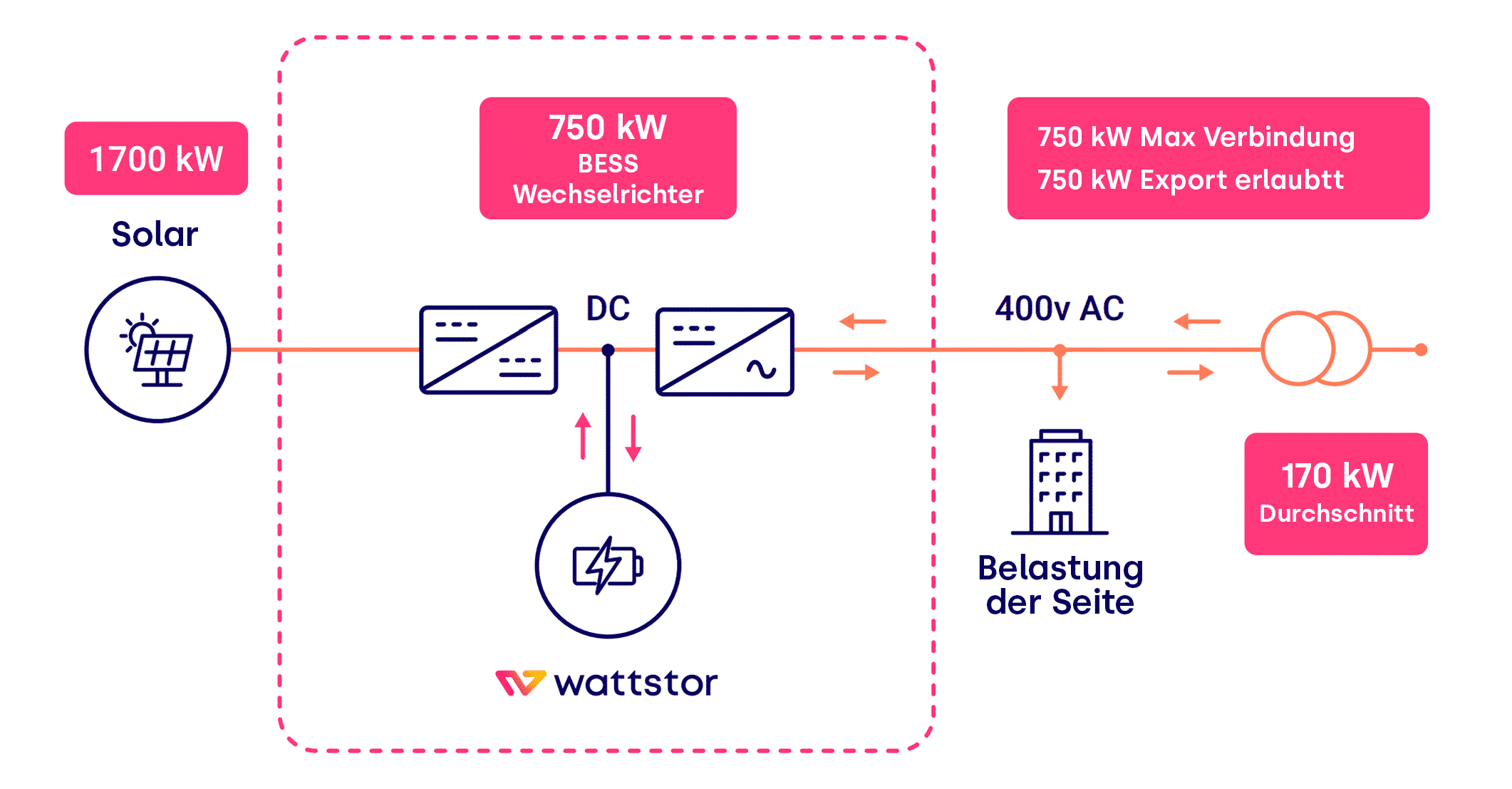 | Batterie (BESS) | 750 kW / 2,500 kWh |